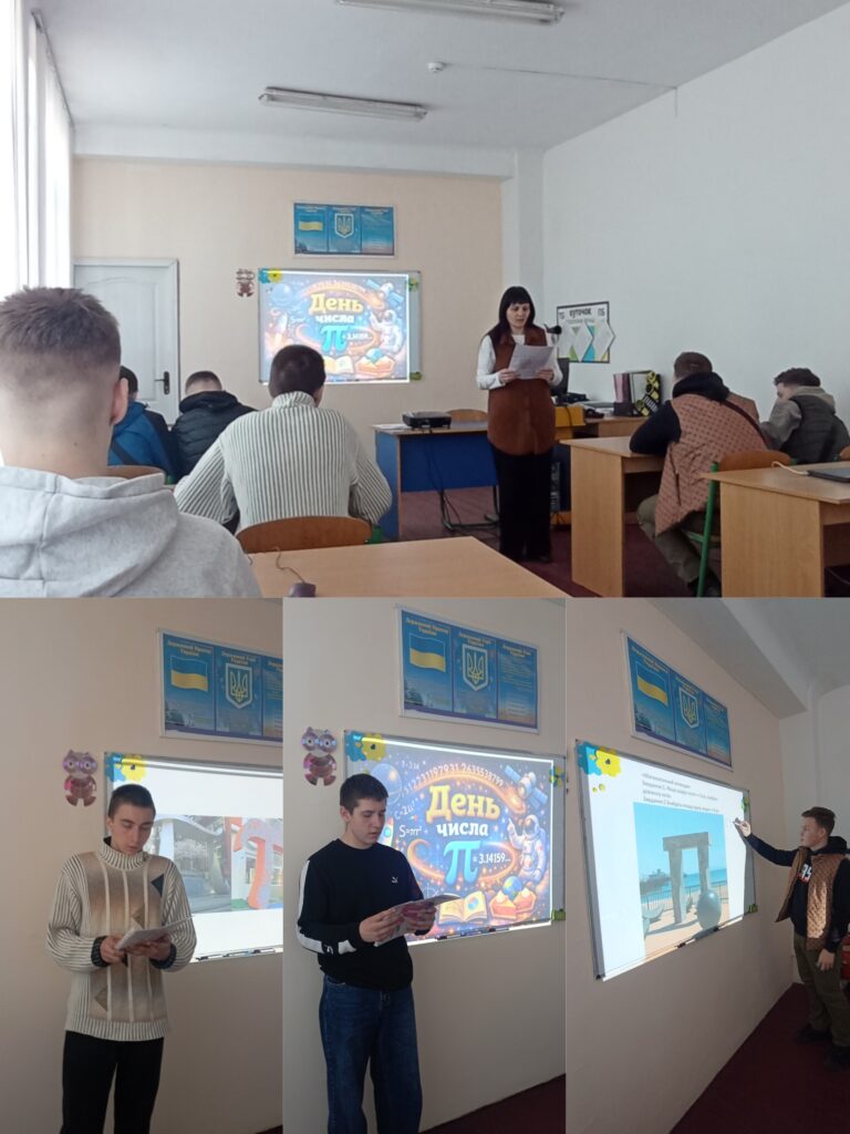 В рамках тижня математики, присвяченого Міжнародному дню числа ПІ, викладачі математики Валентина Лисюк та Наталія Тимчук провели заходи, під час яких, наші студенти мали нагоду поділитися цікавими фактами про число пі, на практиці перевірити відношення довжини кола до його діаметра, поглибити та перевірити свої знання, взявши участь в інтелектуальній грі, дослідити де крім математики застосовується число пі, та провести паралель між математикою і навколишнім світом. Метою проведення даних заходів було підвищення інтересу студентів до вивчення математики, розвиток творчого та логічного мислення, роботи в команді, розширенні кругозору. Сподіваємося, що вдалося