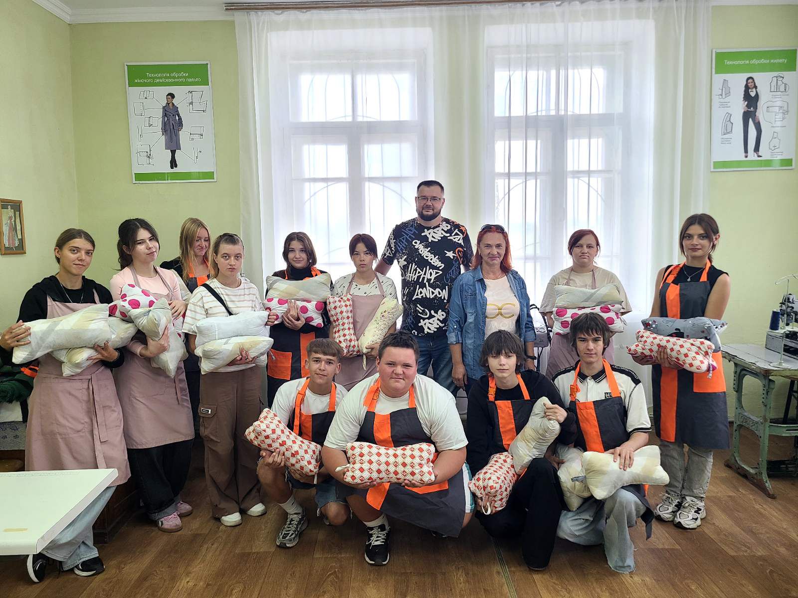 Наші здобувачі продовжують волонтерити, сьогодні наші майстри та здобувачі швейної справи запросили волонтерів Фонд Людей Олена Сивюк та Євген Марчук і надали допомогу подушечками кісточками,які самі відшили і які потребують шпиталі з захисниками.