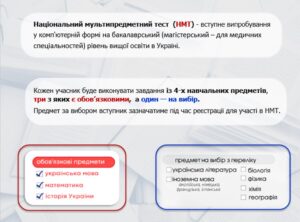 Планується, що національний мультипредметний тест буде складатися з 4 предметів. Три з них будуть обов’язковими: українська мова, математика та історія України. Ще один предмет учасники мультитесту мають обрати самостійно з переліку. Презентаційний матеріал про НМТ 2026